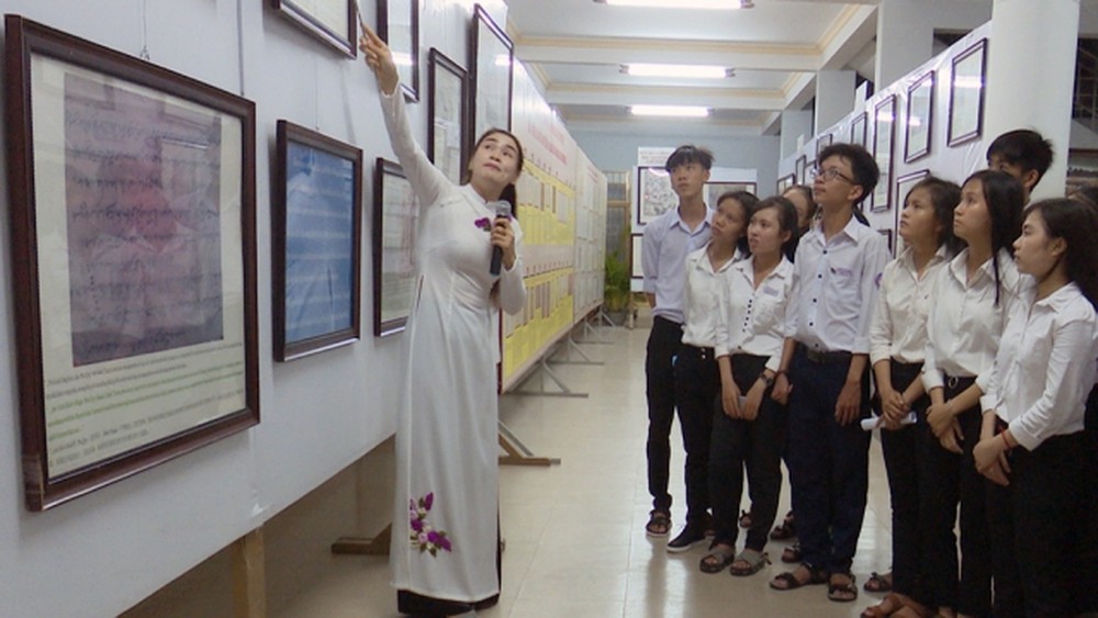 Các em học sinh lắng nghe lời giới thiệu về quá trình xác lập, thực thi và bảo vệ chủ quyền của Việt Nam đối với hai quần đảo Hoàng Sa và Trường Sa. |