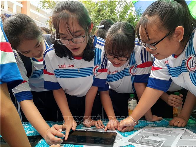 Học sinh hào hứng với trò chơi tương tác Hành trình Trường Sa - Ảnh: baotintuc.vn |