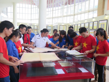 | Người dân tham quan Triển lãm bản đồ và trưng bày tư liệu Hoàng Sa, Trường Sa của Việt Nam. (Ảnh: Nhan Sinh/TTXVN) |