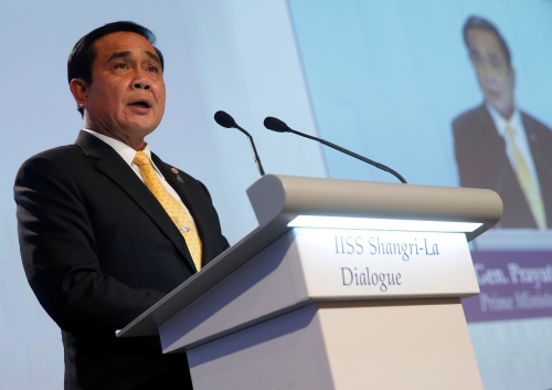 | Thủ tướng Thái Lan Prayuth Chan-o-cha trong bài phát biểu tối nay tại Singapore. Ảnh: ReutersThủ tướng Thái Lan Prayuth Chan-o-cha trong bài phát biểu tối nay tại Singapore. Ảnh: Reuters |