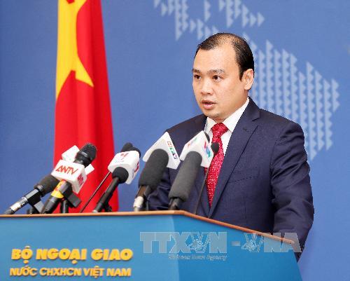 | Người phát ngôn Bộ Ngoại giao Lê Hải Bình phát biểu trong một buổi họp báo. Ảnh: TTXVN. |
