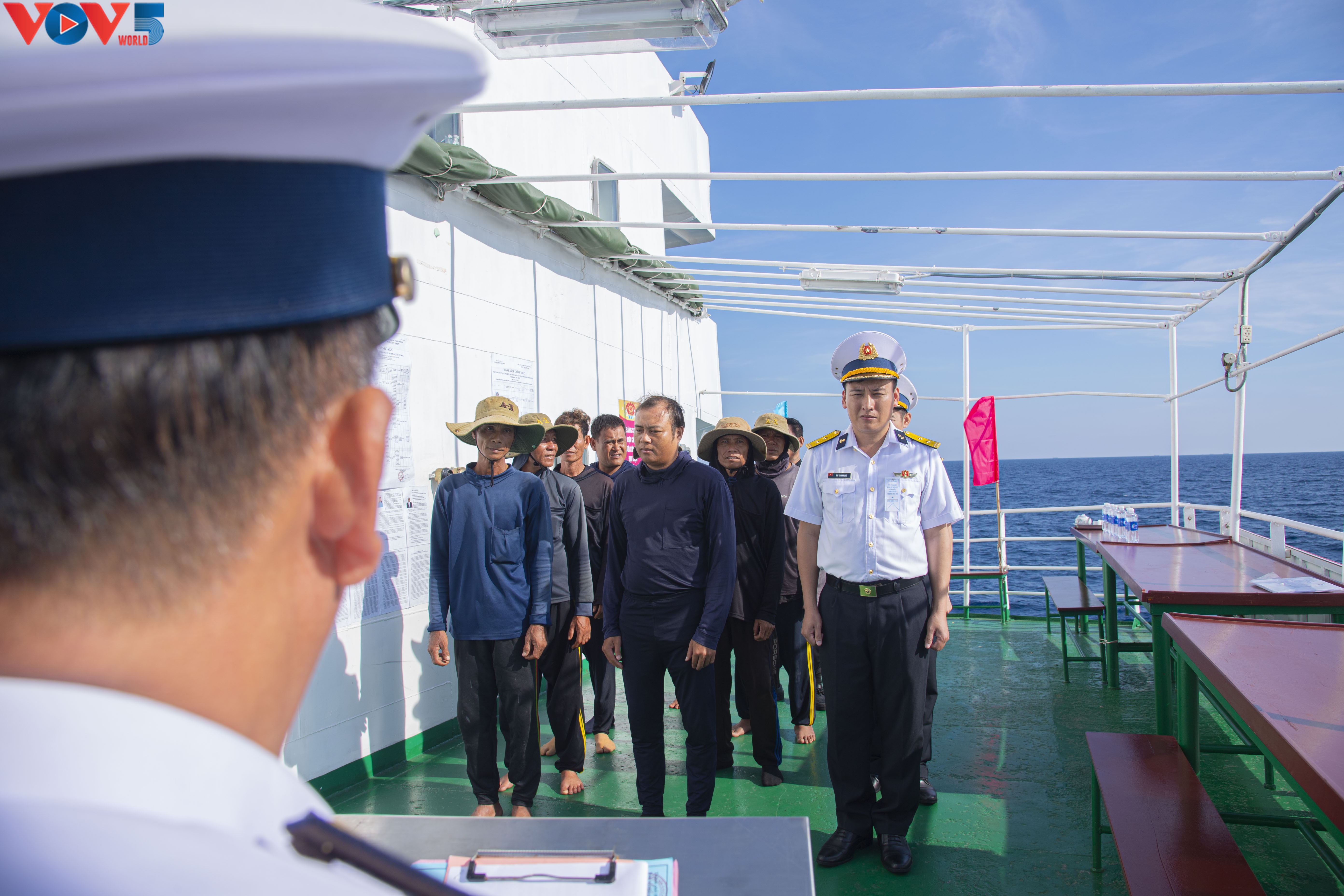 Tổ chức phổ biến, hướng dẫn cho cử tri trên tàu cá Qng96435TS của Quảng Ngãi. Ảnh: VOV |