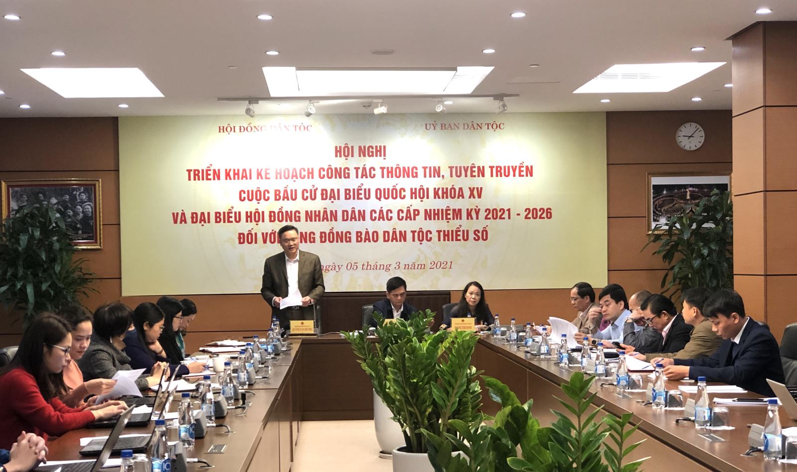 Sáng 5/3, tại Hà Nội, Hội đồng dân tộc và Ủy ban Dân tộc tổ chức Hội nghị “Triển khai Kế hoạch công tác thông tin, tuyên truyền cuộc bầu cử đại biểu Quốc hội khóa 15 và đại biểu Hội đồng nhân dân các cấp nhiệm kỳ 2021 - 2026 đối với vùng đồng bào dân tộc thiểu số”.