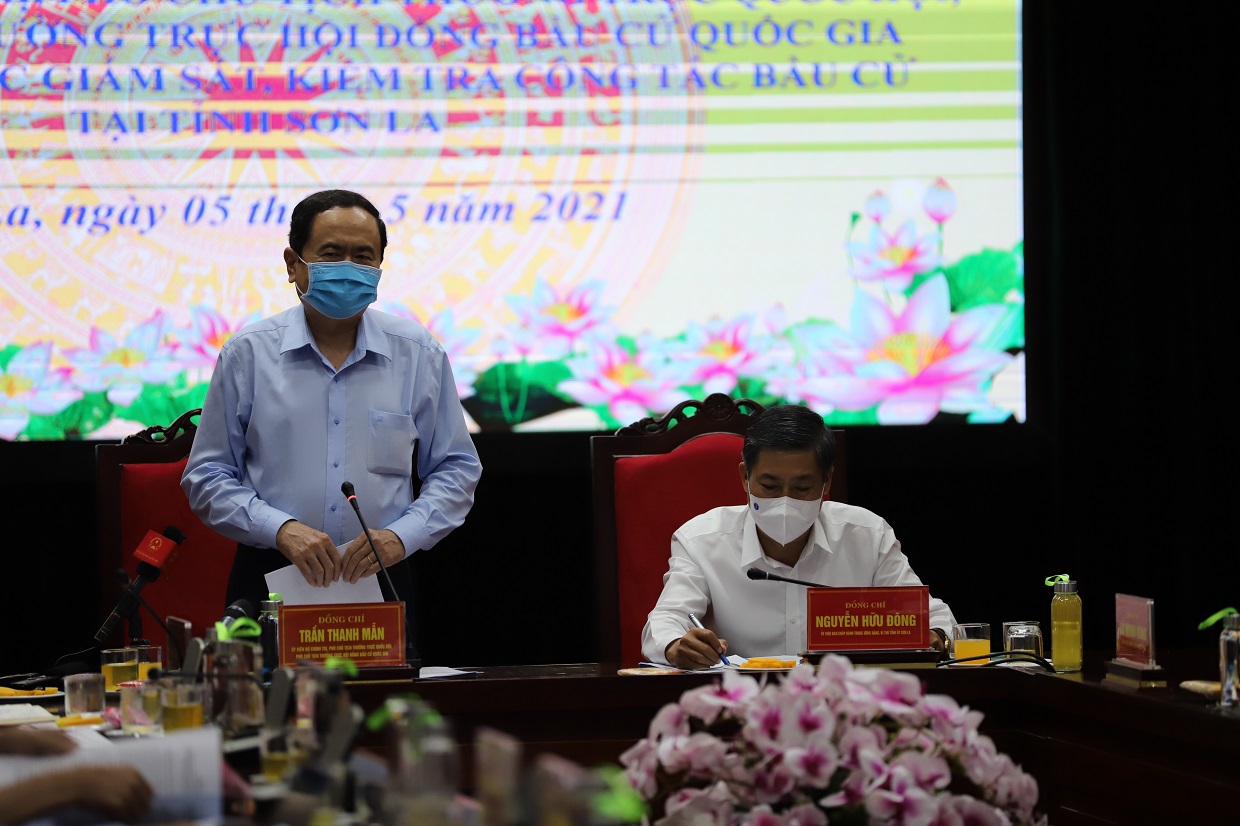 Ông Trần Thanh Mẫn đánh giá cao công tác tổ chức triển khai các hoạt động của tỉnh Sơn La cho ngày bầu cử bảo đảm đồng bộ, chặt chẽ, đạt kết quả cao, đúng thời gian luật định; đồng thời đề nghị tỉnh tiếp tục chỉ đạo triển khai thực hiện đồng bộ các giải pháp đảm bảo thành công cho bầu cử: “Tôi đề nghị tỉnh quan tâm, theo dõi, trực 24/24h và có 3 vấn đề: một, là công tác tuyên truyền từ nay đến đó; thứ 2 là vận động nhân dân ý thức đi bầu; vấn đề thứ 3 là vấn đề an ninh, chính trị, trật tự an toàn xã hội”.