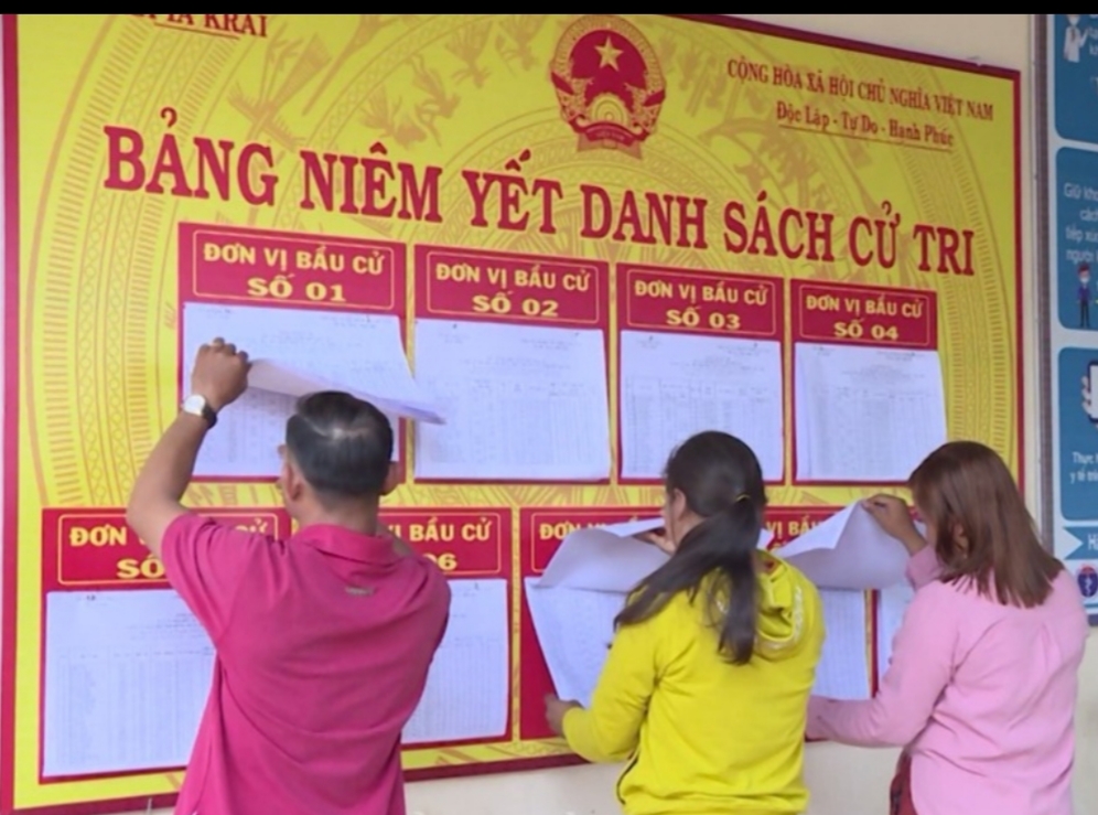 Bảng niêm yết cử tri ở một địa điểm bầu cử tỉnh Gia Lai. |