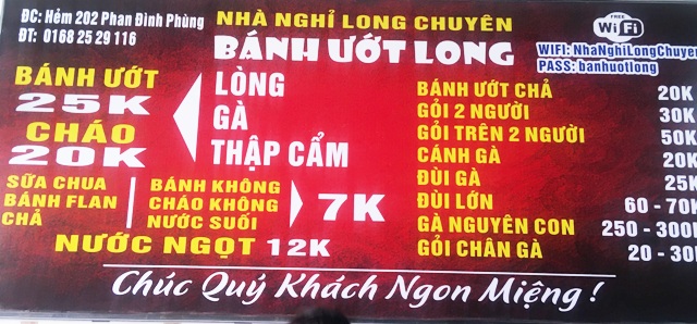 Đến Đà Lạt vào một ngày chớm đông lạnh khoảng 19 đô C và đúng vào bữa trưa, cô em họ người bản xứ đưa tôi đến một con hẻm nhỏ nằm trên phố Phan Đinh Phùng. Vòng vèo hồi lâu, đi lên đi xuống con dốc nhỏ ngoằn nghèo (đặc trưng của Đà Lạt thì phải) mới đến một quán nhỏ nhưng khá đông khách. Long Chuyên là tên vợ chồng chủ quán, làm nghề gia truyền được 15 năm. Trong lúc chờ, chúng tôi được phục vụ một bát nước súp gà trước cho ấm bụng.