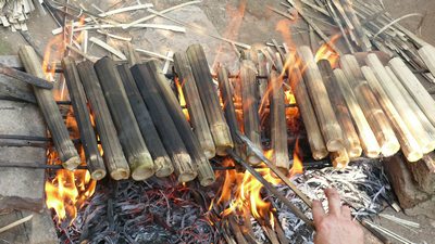 | Cơm lam được nướng trên bếp lửa. (Ảnh: backan.gov.vn) |