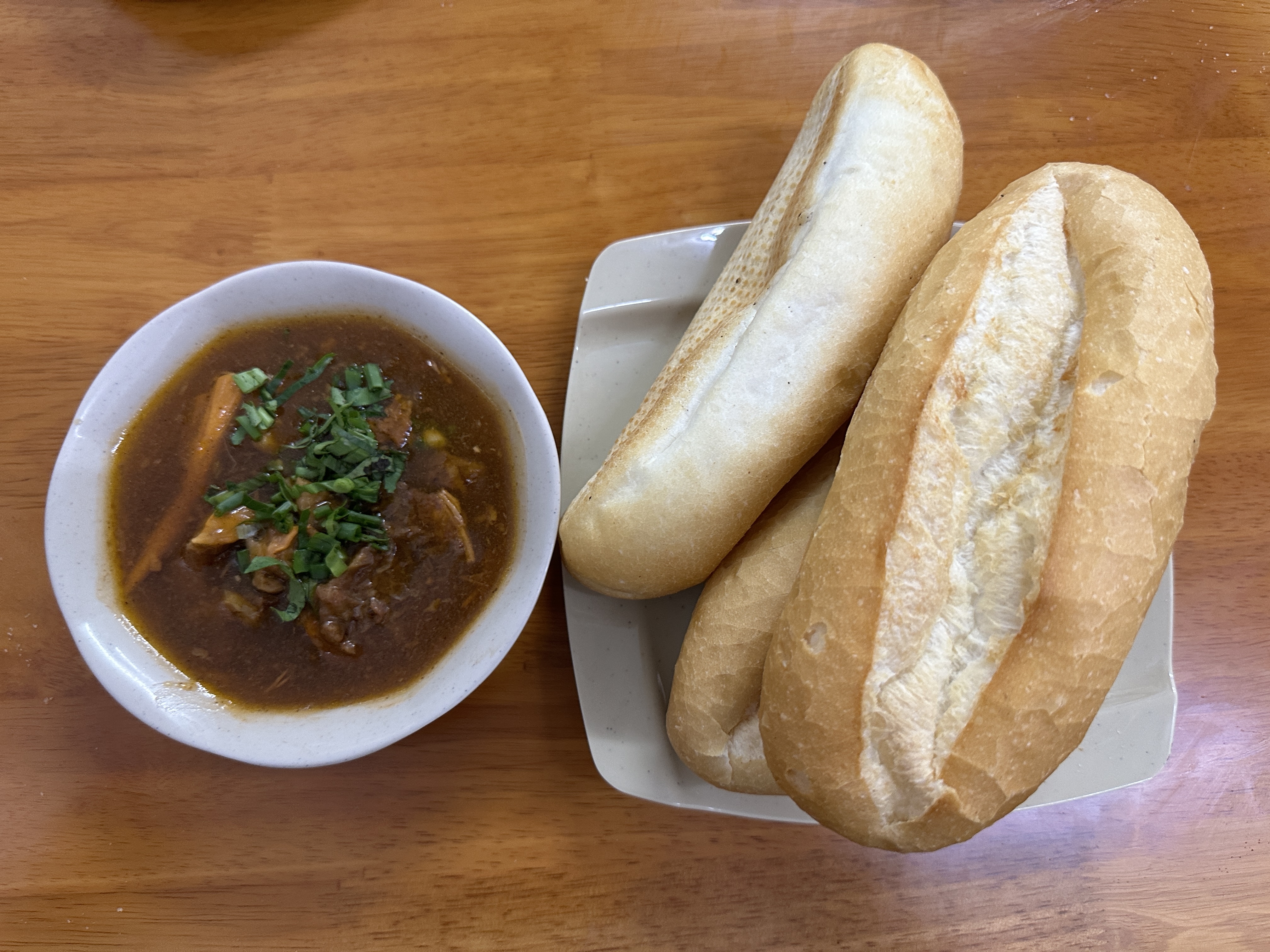 Món bò sốt vang ấm nóng thường được ăn kèm với bánh mì. Ảnh Minh Anh |