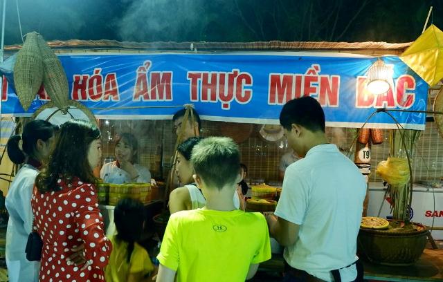 Thực khách cũng tấp nập ở khu vực các gian hàng ẩm thực miền Bắc với nhiều món ngon tiêu biểu. Anh Hoàng Văn Tiến, Tổng bếp trưởng Công ty Cổ phần đầu tư và thương mại tập đoàn Vietstar, hào hứng chia sẻ về những đặc sản mà công ty mang đến lễ hội: “Công ty ở ngoài bắc vào mang theo năm loại bánh bao nhân với năm hương vị khác nhau như: bánh bao trà xanh, bánh bao xá xíu, bánh bao lạp, bánh báo trứng muối. Bánh có loại mặn, loại ngọt, rất dễ ăn và nhiều người ăn được. Chúng tôi còn mang đến lễ hội món cơm cháy Ninh Bình và chả mực Hạ Long giã tay rất nổi tiếng”.