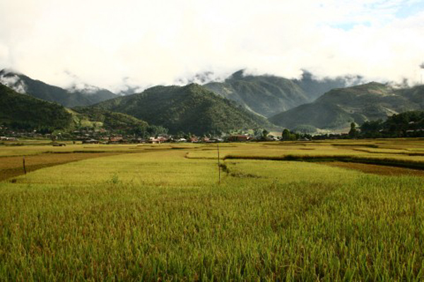 | Cánh đồng nếp tan đang vào thời kì thu hoạch (Ảnh:baosonla.org.vn) |