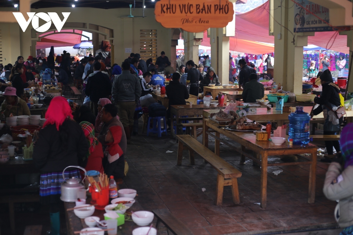 Khu ẩm thực tại chợ Bắc Hà, Lào Cai. Ảnh: CTV Tuấn Anh/VOV.VN |