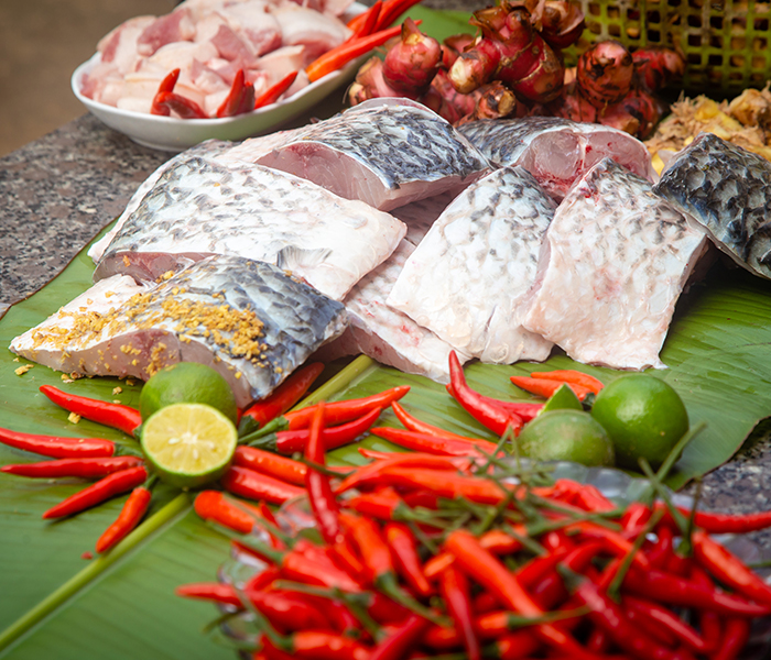 Nguyên liệu chuẩn bị cho món cá kho Nhân Hậu vô cùng đơn giản, toàn những thứ sẵn có của đồng quê Việt Nam gồm: gừng, riềng, chanh, quả chay, khế chua… |