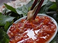 (VOV5) - Mắm tôm chua là món ngon bình dị, thường có mặt trong những bữa ăn gia đình nơi quê hương Trương Định. Một món ăn gợi nhớ những chân ruộng phèn có lúa mùa, nghe âm vang tiếng tôm đất tháng mười búng “tóc tách” giòn tan. Nguyên liệu làm mắm ngon nhất là con tôm đất, cỡ gần bằng ngón tay út người lớn. Được biết, cách làm cũng khá công phu: chọn tôm đất tươi rói, ngâm qua nước phèn chua. Vớt ra, đợi ráo, ngâm rượu vừa ngập mình tôm. Vớt ra, cắt râu và đuôi, rửa lại bằng nước rượu vừa ngâm. Sau đó ướp khoảng một muỗng canh muối hột giã nhỏ với nửa ký tôm, đợi ngấm một đêm. Vớt tôm ra, để ráo. Nấu nước mắm và đường cát theo tỷ lệ 2-1, thật sôi, để nguội. Với một ít tỏi đã lột vỏ và ớt sừng trâu giã, thân mía lau (mía đường) chẻ nhỏ và lá chùm ruột. Xếp lá chùm ruột dưới đáy vại hoặc hũ keo. Kế tiếp xếp tôm trộn tỏi và ớt giã vào. Chế nước mắm đường đã đun sôi cho ngập tôm, dùng mía chẻ gài tôm lại thật chặt, đậy kín. Mang phơi nắng từ 7-10 ngày, nước mắm sẽ ngả màu hổ phách, óng ánh. Vậy là ngon ăn!