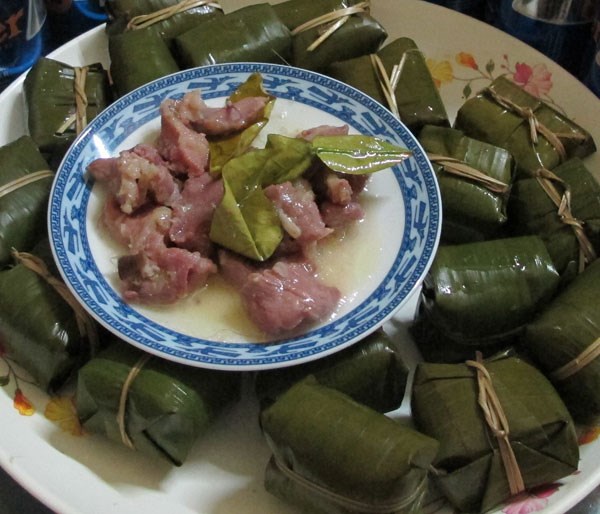 Khác với món nem chua chỉ cần bóc lớp vỏ là ăn, món nem quê tôi phải được nướng. Mỗi khi nhà có khách đến chúc Tết, má sẽ lấy 1 hoặc 2 chiếc nem vùi xuống tro nóng. Chỉ cần nướng một chút cho dậy mùi món ăn. Lớp lá chuối dính tro được bóc đi, chiếc nem đỏ au lộ diện sau lớp lá chanh xanh non. Món nem tuy chín nhưng có màu đỏ của thịt tươi, mùi thơm lừng lá chanh cộng với tiêu, tỏi. Khách nhấp chén rượu chúc Tết đầu năm, rồi đưa đầu đũa tách nhẹ mấy miếng thịt đỏ au, chua chua nhè nhẹ đã nghe mùi thơm lan khắp nhà.