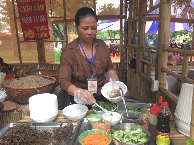 Quán miến lươn 30 năm nức tiếng Hà thành ở số 1 Chân Cầm cũng góp mặt trong khu vực ẩm thực. Điều làm nên sự đặc biệt cho những bát miến lươn Minh Lan này chính là ở món lươn khô giòn tan và nước dùng được chế biến kỳ công theo công thức gia truyền đặc biệt. Tiết và xương lươn ninh thật nhừ rồi cô đặc thành nước cốt, sau đó hòa thêm nước tạo ra thứ nước sốt sánh đặc, rất riêng của quán. Sợi miến mềm dai vừa độ, lươn ngọt đậm lại giòn. Chị Vũ Thị Phượng cho biết: “Nhà có bốn chị em gái đều làm miến lươn. Bát miến lươn ngon thì quan trọng nhất là nước dùng và lươn là thứ hai. Quan trọng nhất là nước không bị tanh, không có mùi”.