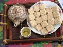 Đây là món ăn quen thuộc, lại có sức quyến rũ bởi cái vị ngọt béo của đường, giòn của đậu phụng, thơm bùi của mè. Nó còn có một người bạn đi kèm không thể tách rời đó là trà sen - thứ trà được ướp công phu từ những đóa sen còn đọng hơi sương...