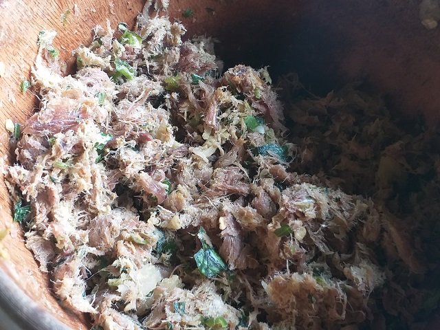 Chàng trai Y Hem Bkrông, quản lý kiêm đầu bếp của quán ăn giới thiệu cách nấu món ăn đặc sắc, cầu kỳ nhất của người Ê đê, món vêch: “Món vêch mới cầu kỳ, là món đặc sản của người Ê đê. Mình mua bộ lòng của con bê về, rửa bằng muối hột, luộc sơ qua, thái nhỏ ra rồi ướp với củ nén, ớt xanh. Theo cách nấu của đồng bào xưa thì không xào trước mà bỏ vào nồi, đun chín rồi bỏ gia vị, ngò gai thành món vêch.”