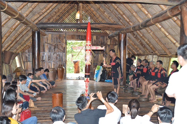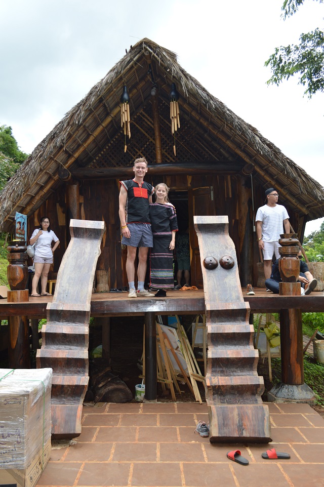 Y Gia Buôn Giá, cậu nhân viên trẻ của quán ăn kèm khu dịch vụ lưu trú du lịch Ako Ea, nơi khu rừng Đầu nguồn xưa trong buôn A Kô D’ hông, đợi đón khách trước nhà: “Em sẽ giới thiệu về bản sắc của người Ê đê ở đây. Khi đến cầu thang mình sẽ thấy một bên cầu thang sẽ có hai bầu vú và một bên thì không. Thông thường khách hỏi, em sẽ giải thích vì bọn em theo chế độ mẫu hệ, người mẹ luôn là cao nhất, vì thế khi bọn em tiếp khách, khách sẽ đi lên theo đường có hai bầu vú của người mẹ, còn khi về khách có thể xuống theo đường ngược lại hoặc xuống theo đường cũ vẫn được.”
