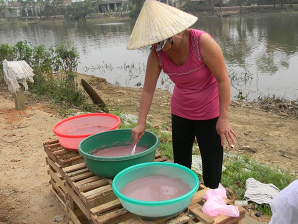 | Người dân xã Phong Thuỷ, huyện Lệ Thuỷ chế biến món nhút tép. Ảnh: Dân Việt |