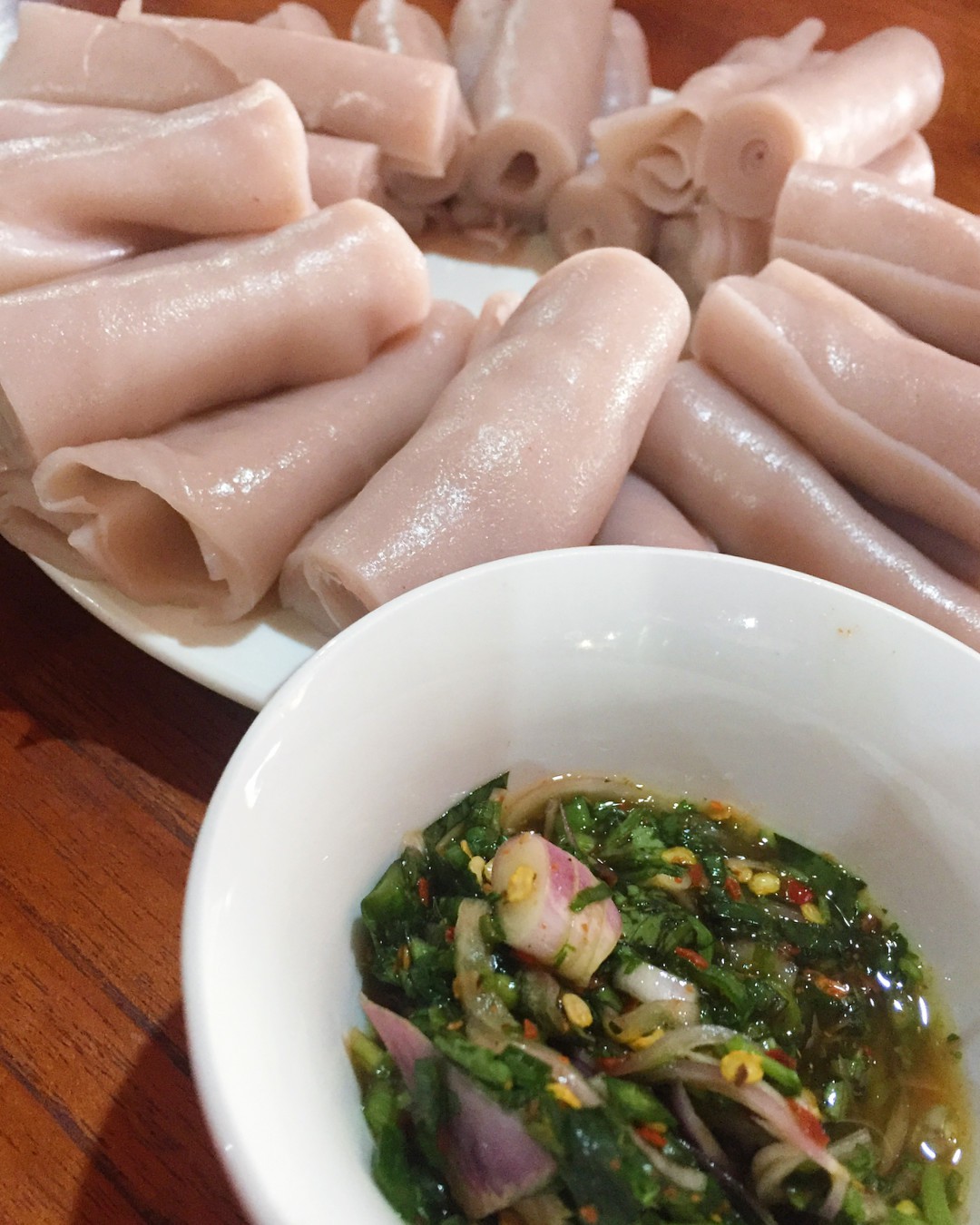 Bánh phở hồng được làm từ gạo nương có màu đỏ hồng. |