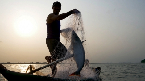 (VOV5) - Những người làm nghề lưới cá bông lau ở đây, tùy theo con nước, mỗi ngày có thể thả lưới hai đến bốn lượt.