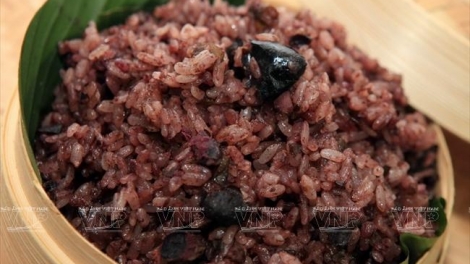 (VOV5) - Xôi trám dẻo, thơm, không dính tay, đơm ra đĩa có màu tím hồng khá đẹp, mùi thơm của hạt nếp dẻo hòa lẫn cùng vị bùi, béo ngậy, giàu chất dinh dưỡng của trám rừng, ăn nhiều không thấy ngán.