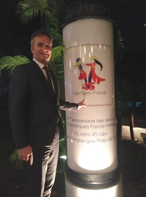PV":Thưa ông, lô-gô biểu trưng cho mối quan hệ ngoại giao 45 năm hợp tác giữa Việt Nam và Pháp hướng tới nội dung gì ah?