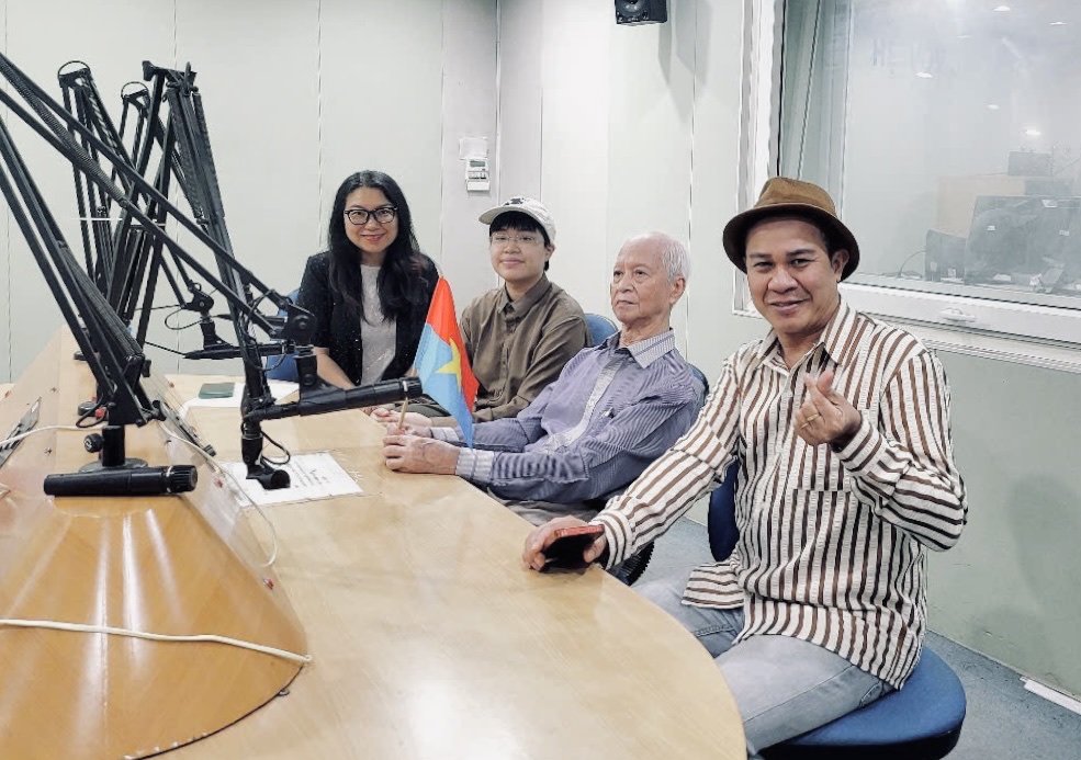 Gia đình ông Nguyễn Hữu Thái trong studio của Đài TNVN