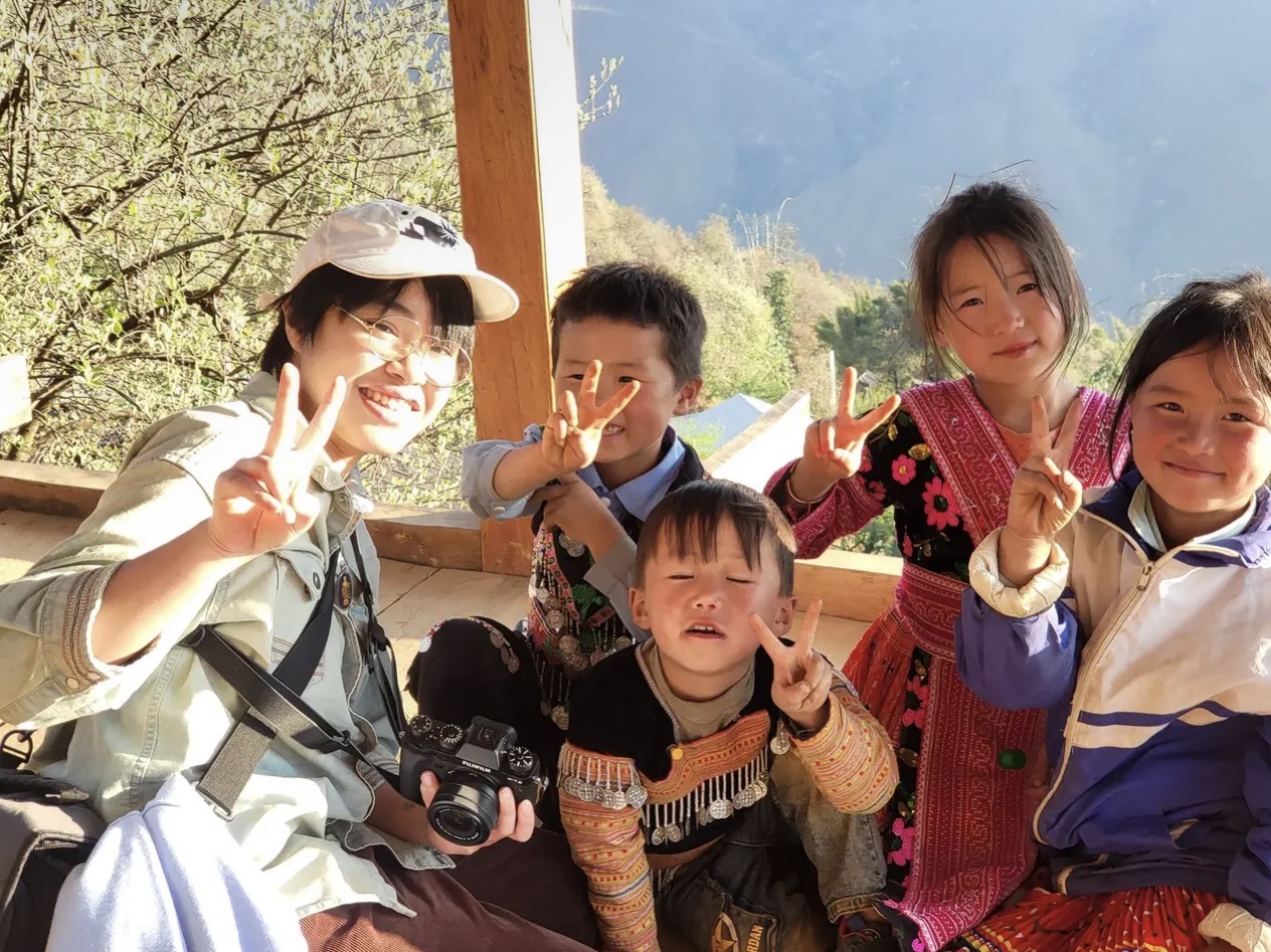 Anh Nguyễn Hữu Thái Hòa và Trâm Anh trong chuyến đi sẻ chia với các em nhỏ miền núi