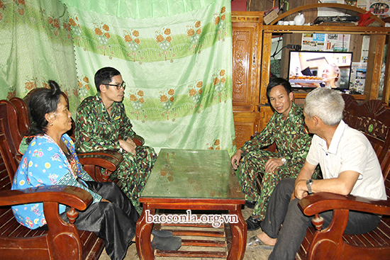 Cán bộ, chiến sĩ Đồn Biên Phòng Mường Lạn ( Sôpcop) tuyên truyền, vận động nhân dân thực hiện tốt công tác tố giác tội phạm.- Ảnh Baosonla |