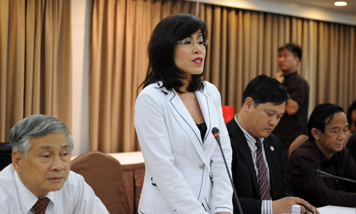 | Chị Phan Bích Thiện đóng góp ý kiến trong một hội nghị của Trung ương Mặt trận tổ quốc Việt Nam - Ảnh: Minh Thăng/vietnamnet |