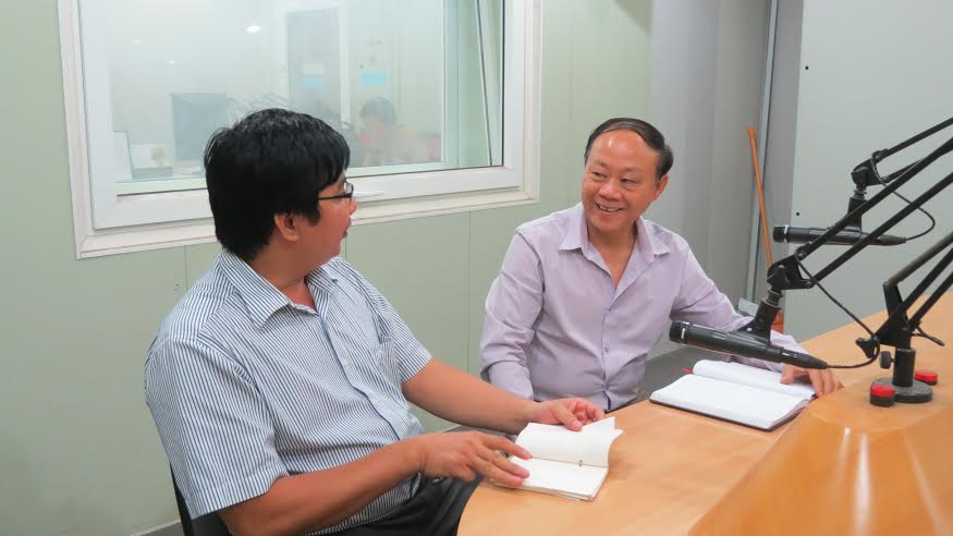 Ông Nguyễn Tài Phương trả lời phỏng vấn phóng viên VOV5 tại phòng thu. Ảnh: Lan Phương