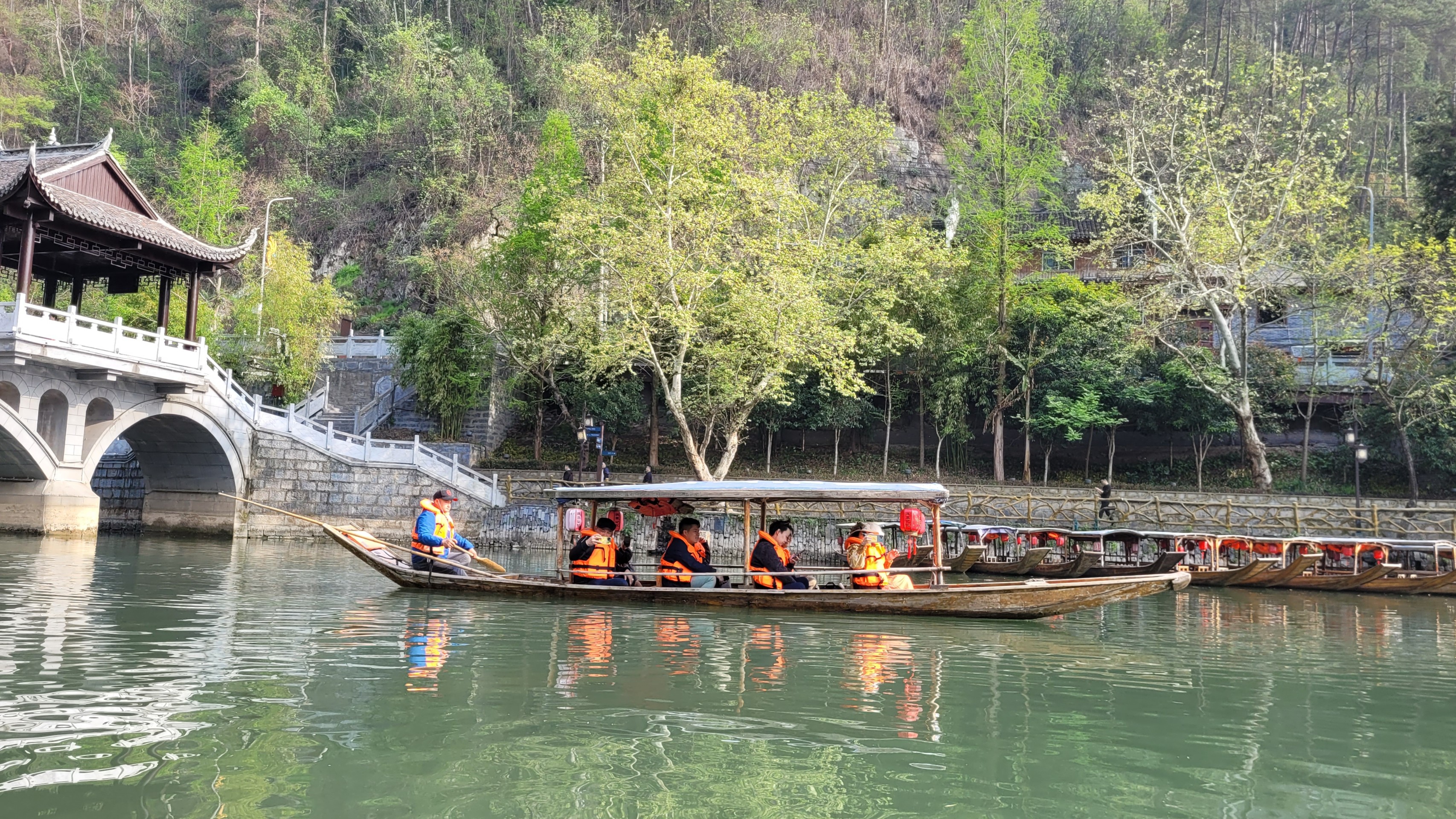Du thuyền trên sông Đà Giang ở Phượng Hoàng Cổ Trấn. |