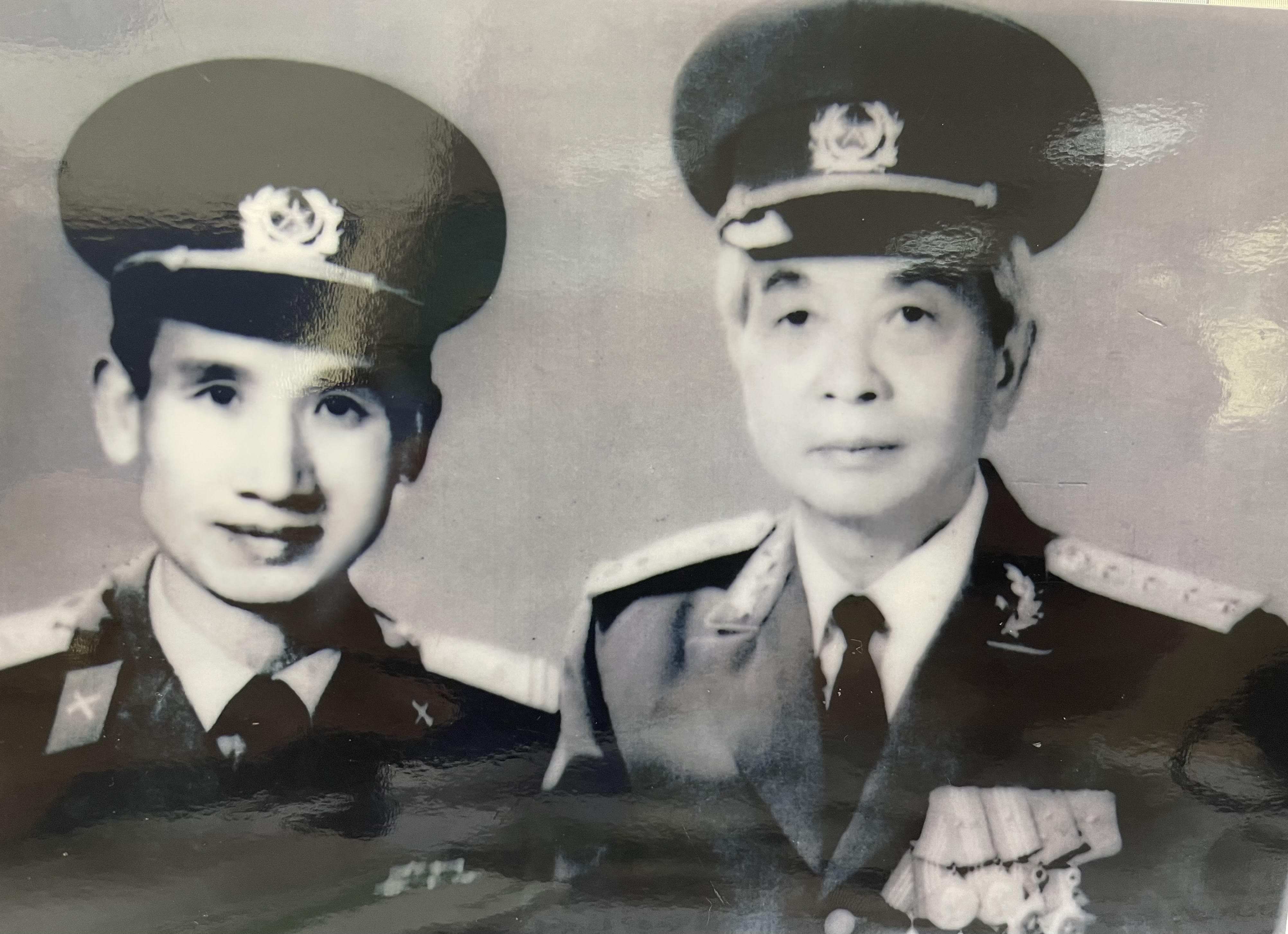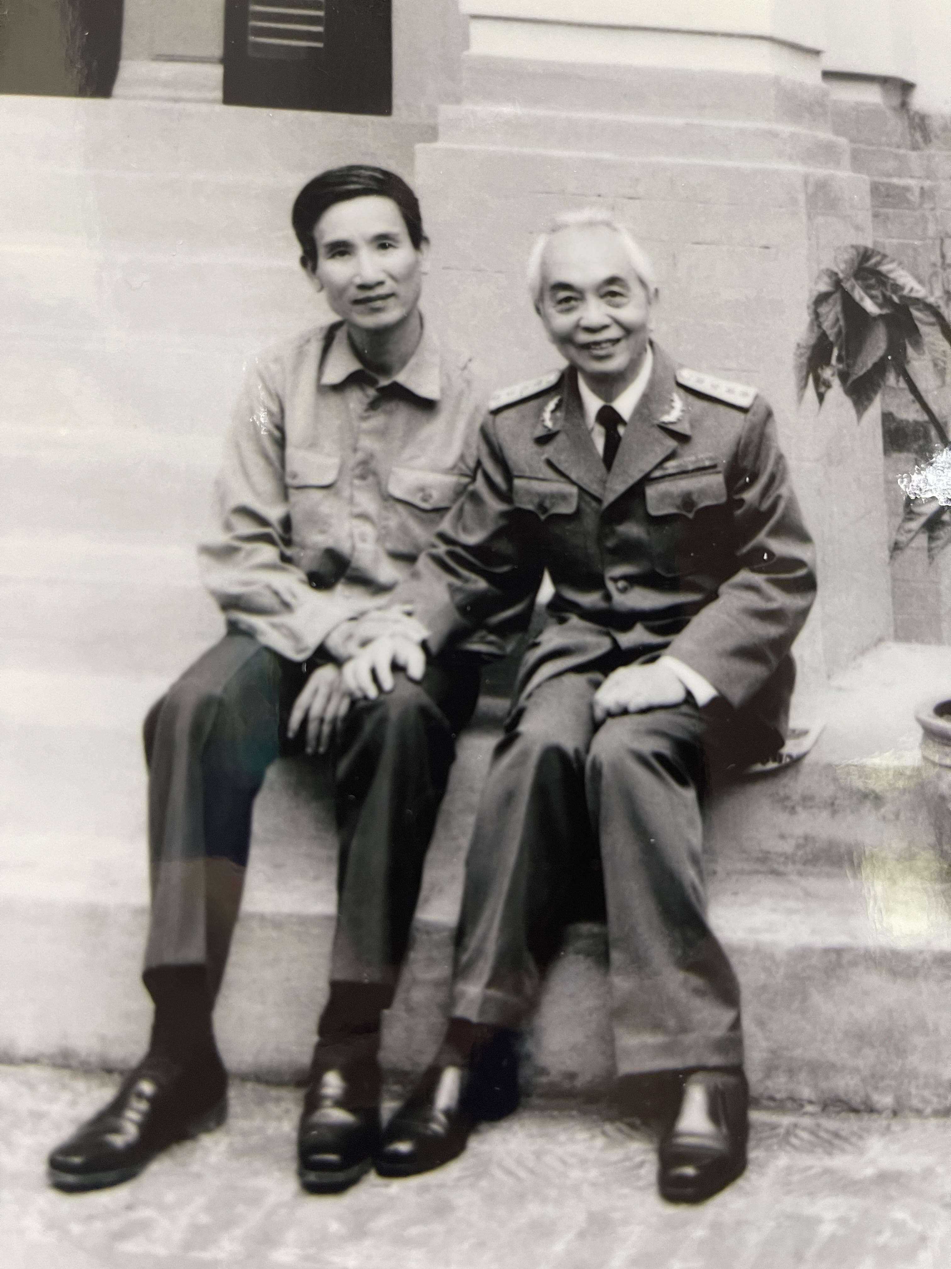 Đại tướng Võ Nguyên Giáp chụp ảnh cùng Đại tá Trần Huy Khuông, năm 1986, tại nhà riêng của Đại tướng |