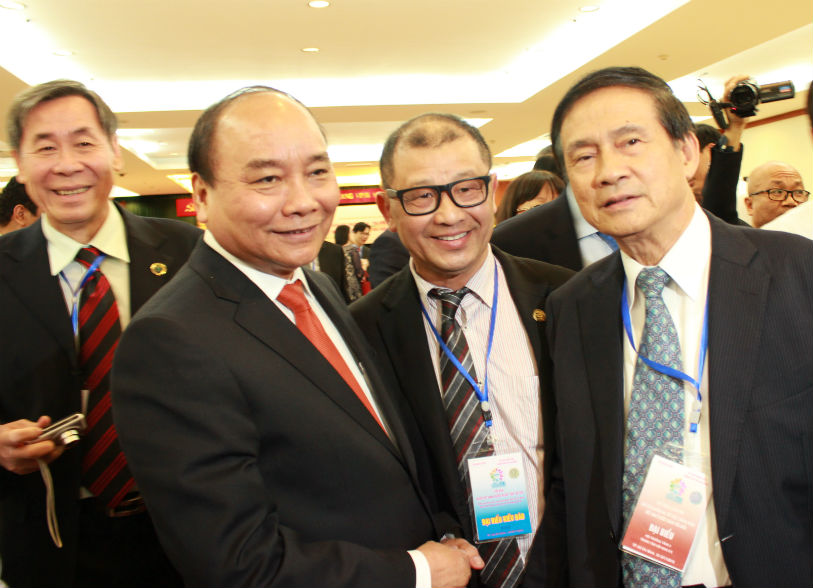 | Giáo sư Nguyễn Trí Dũng (bìa phải ) chụp ảnh cùng thủ tướng Nguyễn Xuân Phúc và các đại biểu kiều bào tại Thành phố Hồ Chí Minh |