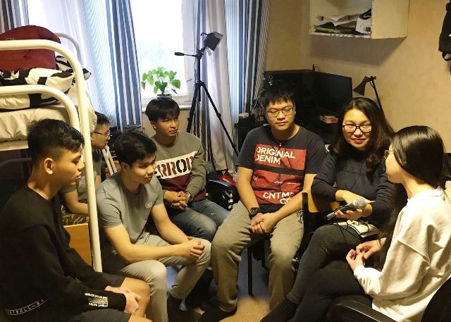 Phóng viên VOV gặp gỡ các bạn du học sinh tại ký túc xã trường Đại học Xây dựng Quốc gia Matxcơva |