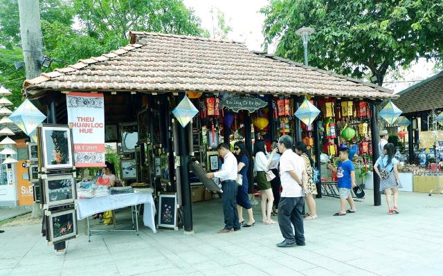 Không gian trưng bày, giới thiệu sản phẩm các làng nghề của Việt Nam được bố trí dọc theo bờ nam của dòng sông Hương. |