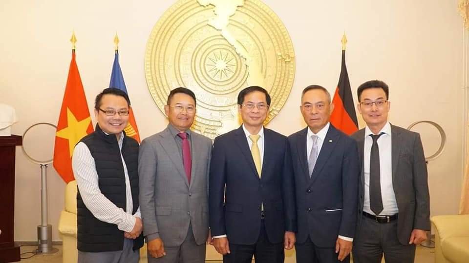Đón tiếp Bộ trưởng Bộ ngoại giao Bùi Thanh Sơn sang thăm và làm việc tại CHLB Đức năm 2022, cùng với chú Nguyễn Văn Hiền, TGĐ Trung tâm Thương mại Đồng Xuân |