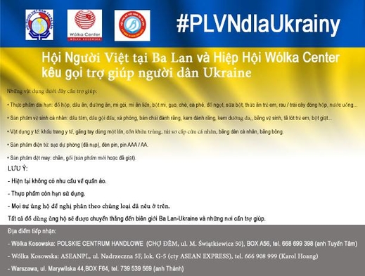 Thông báo của Hội người Việt Nam tại Ba Lan và Hiệp hội Woka Center kêu gọi trợ giúp người dân Ukraine |