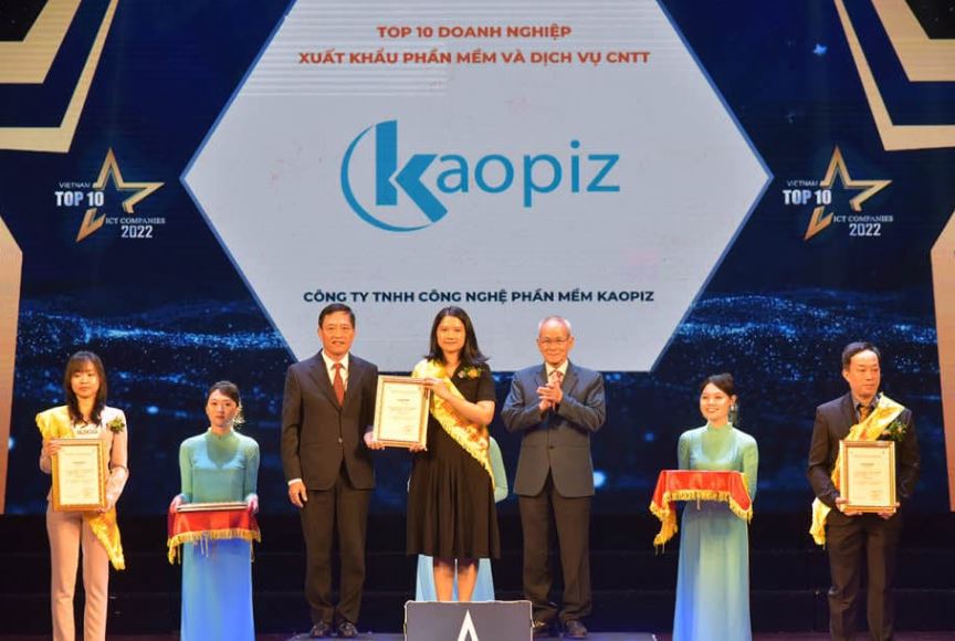 Kaopiz nhận giải Top 10 Doanh nghiệp Xuất khẩu phần mềm và Dịch vụ công nghệ thông tin 2022.