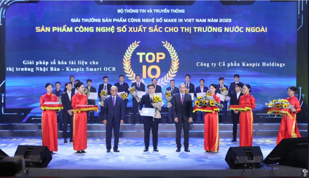 Kaopiz Smart OCR được vinh danh tại Top 10 Doanh nghiệp có sản phẩm công nghệ số xuất sắc nhất, giải thưởng Make in Viet Nam 2023 do Bộ Thông tin và Truyền thông tổ chức.