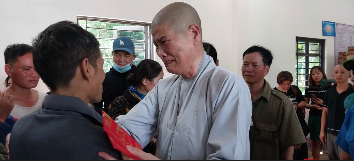 Sáng ngày 13/9/2024, Ni trưởng Thích Nữ Tâm Nguyệt, Ủy viên Ban Trị sự Phật giáo tỉnh Bà Rịa - Vũng Tàu, trụ trì chùa Phổ Hiền rất xúc động chia sẻ nỗi đau và trao tặng số tiền 385 triệu đồng từ sự ủng hộ của các Phật tử chùa Phổ Hiền cho 37 hộ dân Làng Nủ, xã Phúc Khánh, huyện Bảo Yên, tỉnh Lào Cai. Ảnh: Trung Giác – Tuấn Minh/phatsuonline.vn |