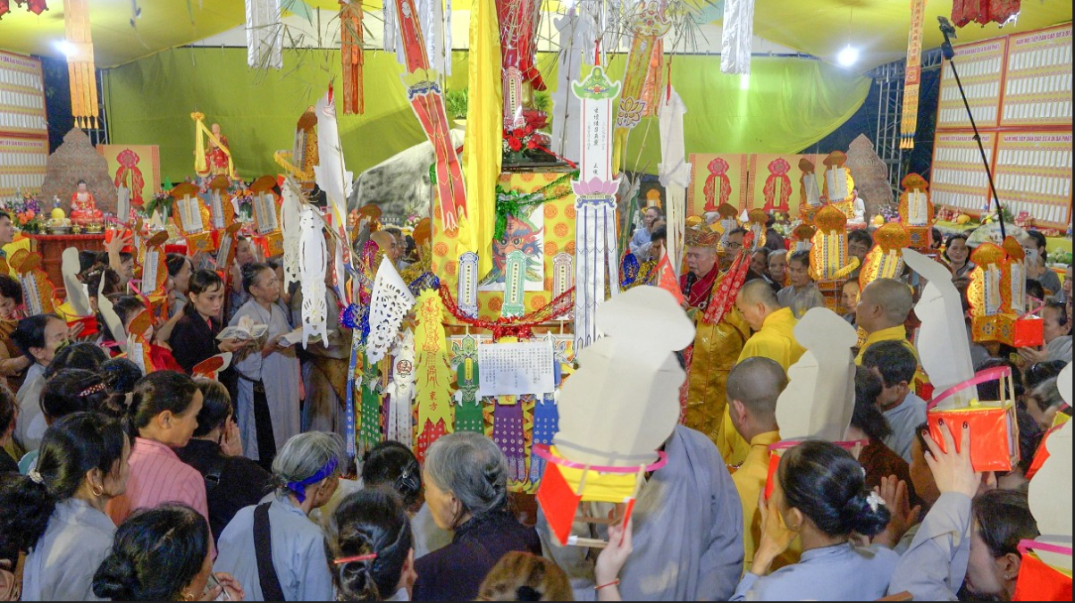 Lễ Vu lan Báo hiếu, trai đàn chẩn tế phả độ gia tiên, giải oan cắt kết, cầu siêu chư hương linh các anh hùng liệt sĩ vị Quốc vong thân, .. là một nét đẹp trong văn hóa Việt Nam được tổ chức tại chùa Sắc Thiên Vương (hay còn gọi là chùa Sóc - thôn Tô Xuyên, xã An Mỹ, huyện Quỳnh Phụ, tỉnh Thái Bình. Ảnh: Ngọc Hằng/phatsuonline.vn |