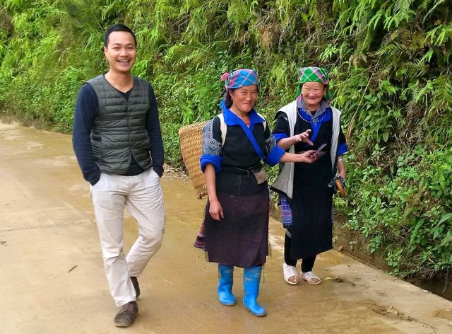 Anh Lê Việt Hà và người dân La Pán Tẩn đi làm "mây" |