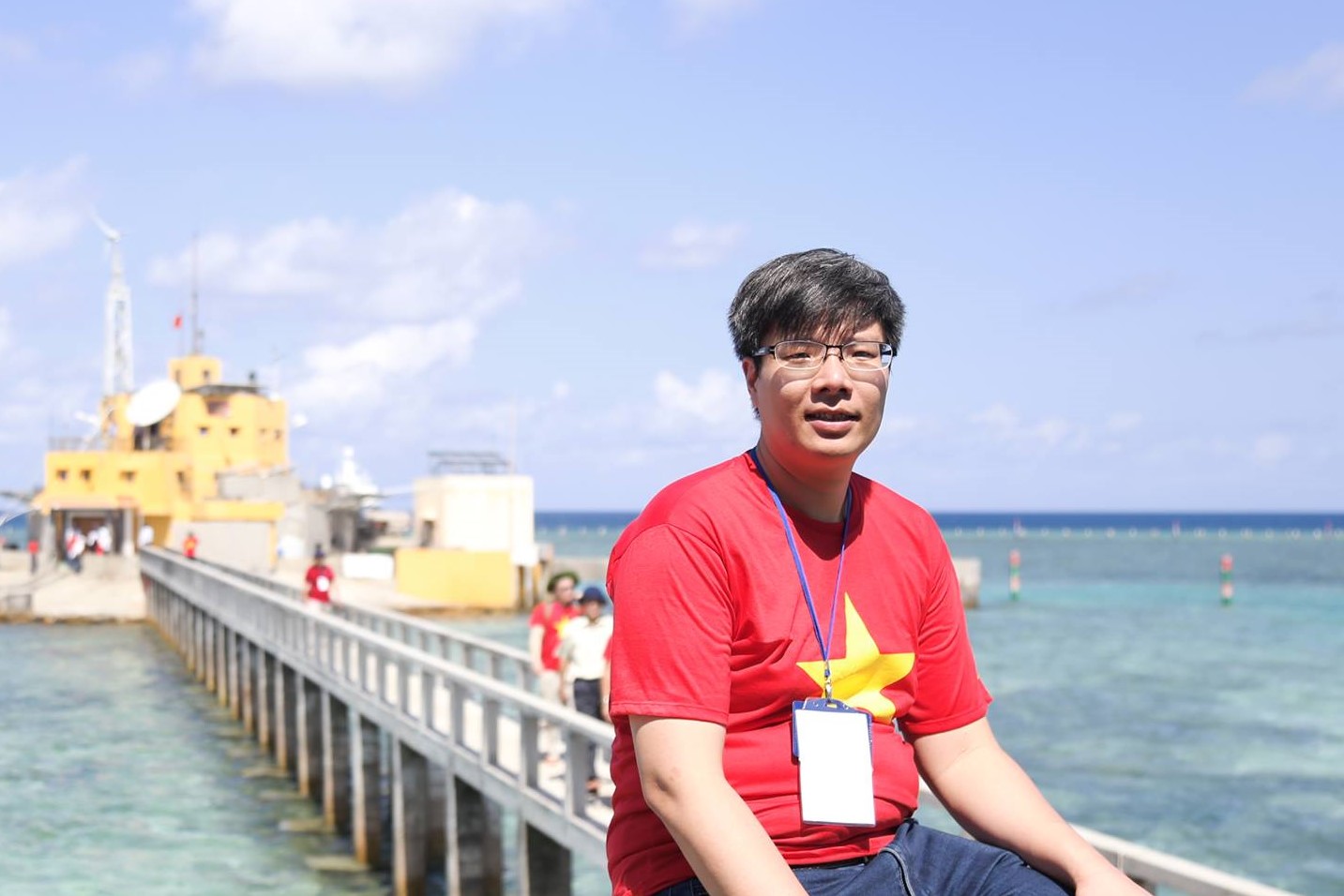 | Anh Trần Hải Linh, Chủ tịch Hội người Việt Nam tại Hàn Quốc, trong chuyến thăm Trường Sa năm 2016 |