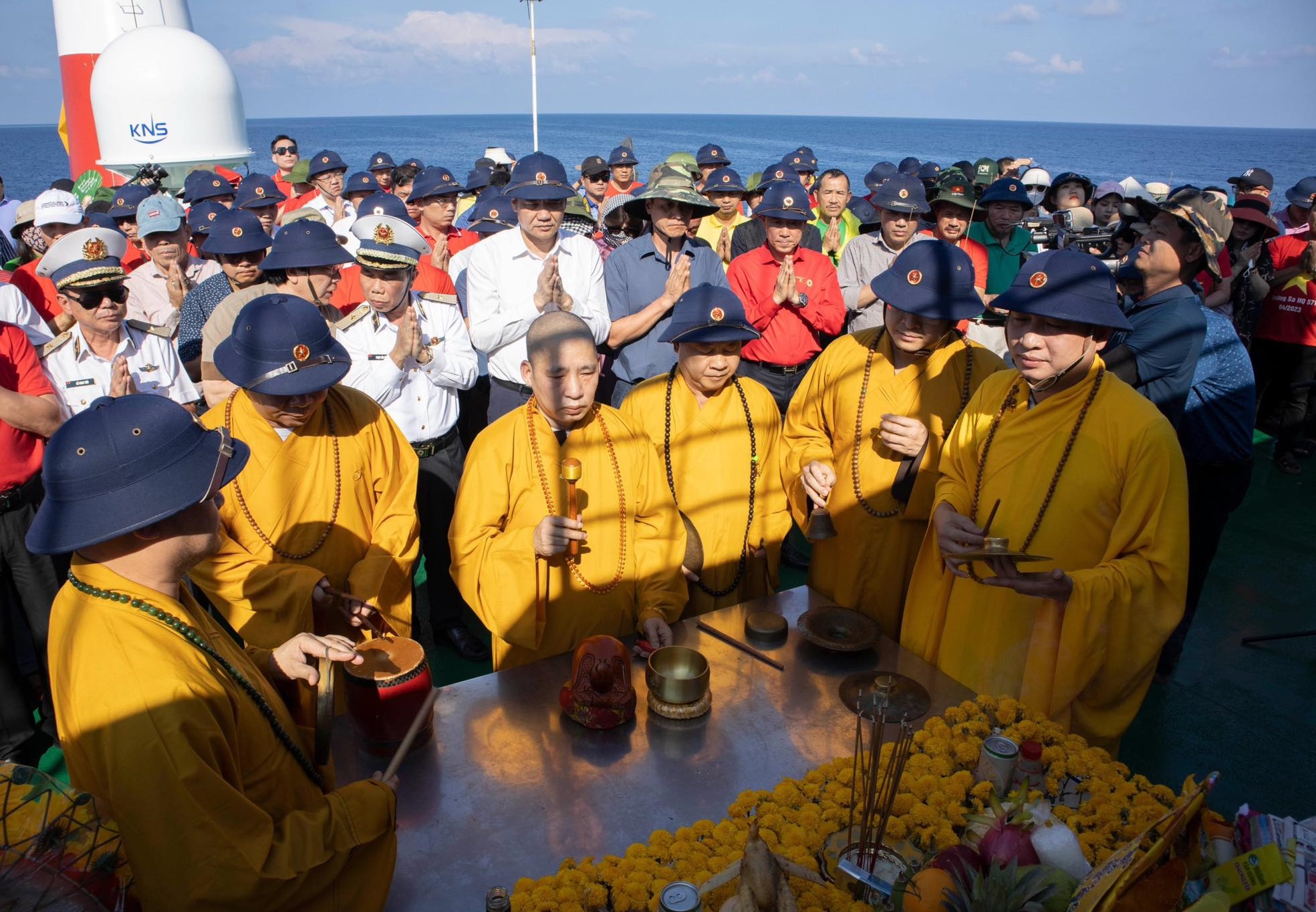 Đoàn công tác số 4 năm 2023 tổ chức lễ tưởng niệm các anh hùng liệt sĩ hy sinh trên quần đảo Trường Sa. Ảnh: Vũ Đình Thắng.