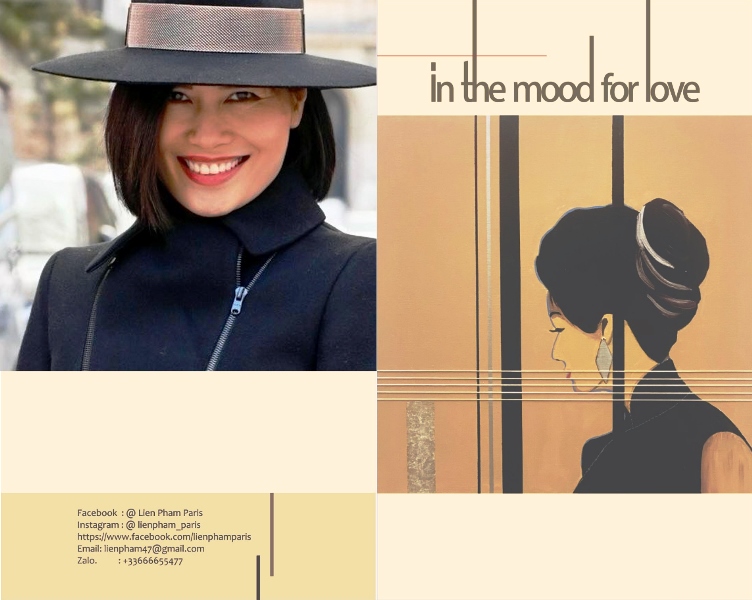 Tôi đã triển lãm tranh 3 lần ở Pháp, trong đó có 2 lần là triển lãm cá nhân và 1 lần triển lãm cùng 21 nghệ sĩ bên đó. Trong lần đầu tiên mang tranh về Việt Nam, tôi chọn bộ sưu tập được vẽ dựa trên những cảm xúc của bộ phim “In the mood for love”. Đầu tiên tôi vẽ về một nhân vật trong phim. Sau đó tôi tưởng tượng nhân vật đó về sau sẽ như thế nào... Lúc đầu là câu chuyện tình yêu giữa 2 người, gặp phải định kiến của xã hội nên họ không đến được với nhau. Sau đó cô gái đã chuyển hướng thành một con người khác... Tôi đã dựa vào những tình tiết trong phim, và rồi sau đó tôi phát triển những tình tiết đó theo trí tưởng tượng của mình.