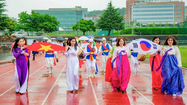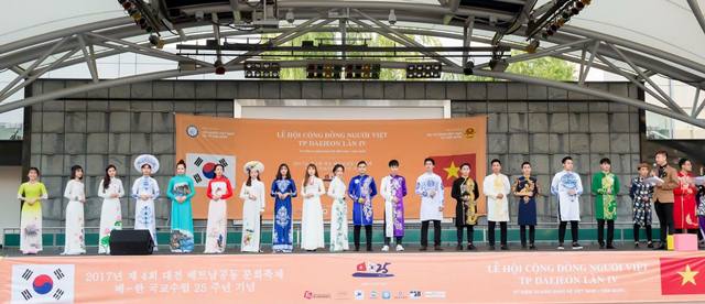 Anh Trần Quang Đôn: Lễ hội cộng đồng Việt Nam tại thành phố Daejeon tổ chức hàng năm có nhiều nội dung. Mục đích quan trọng nhất là gắn kết cộng đồng người Việt, quảng bá hình ảnh đất nước, con người Việt Nam đến với bạn bè Hàn Quốc và thế giới. Điều này làm gắn bó khăng khít hơn tình hữu nghị giữa hai bên. Trong lễ hội văn hóa cộng đồng, chúng tôi có gian hàng ẩm thực để làm điểm nhấn khi nhắc đến văn hóa Việt Nam. Chúng tôi tổ chức cuộc thi Rung chuông vàng. Các cháu trong gia đình đa văn hóa trổ tài kiến thức. Những cháu xuất sắc sẽ được nhận các phần quà. Trong chương trình, khối lao động, khối sinh viên và khối các cô dâu đăng ký thi văn nghệ hoặc biểu diễn văn nghệ với nhiều tiết mục văn nghệ đặc sắc. Năm 2017, chúng tôi còn tổ chức cuộc thi “Nét đẹp hội tụ”, tôn vinh hình ảnh con người Việt Nam. Tà áo dài thướt tha trên sân khấu gợi cho con dân Việt Nam ở nước ngoài niềm tự hào về quê hương.