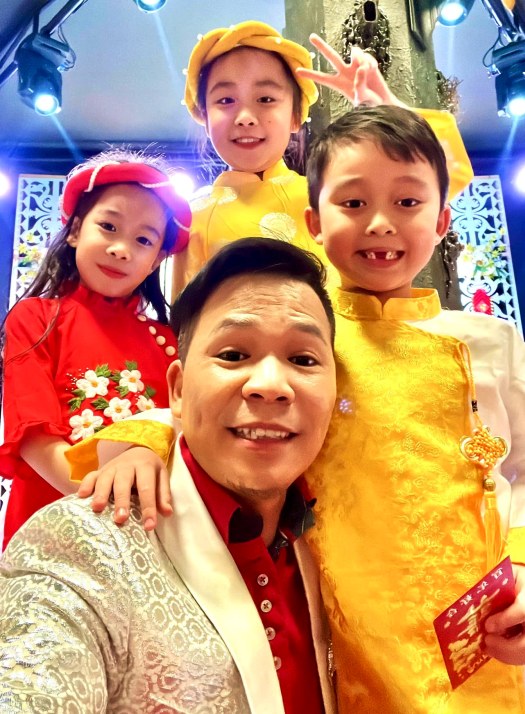 Ông Phạm Gia Hậu cùng các cháu bé trong chương trình đón xuân của cộng đồng |