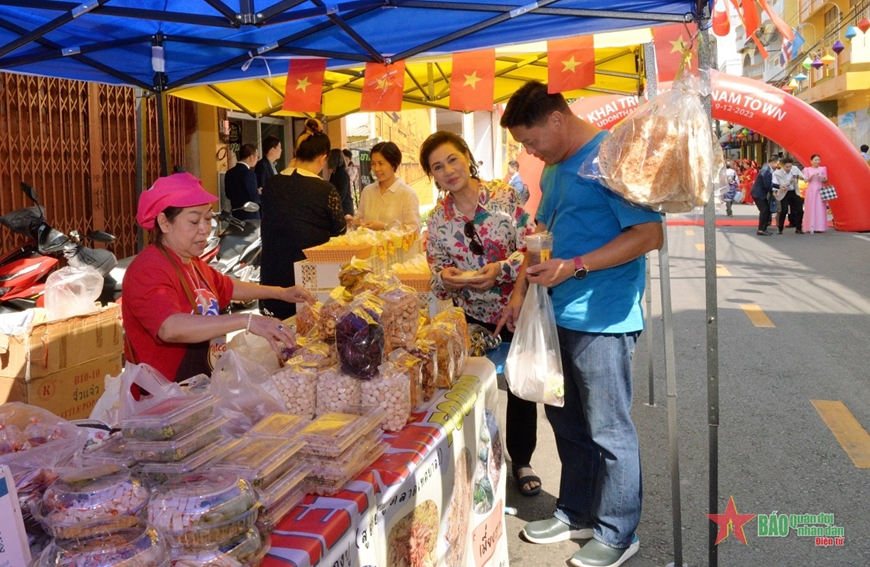 Gian hàng bán bánh kẹo, đồ khô ở phố Việt Nam Town, tỉnh Udon Thani. Ảnh Báo Quân đội nhân dân.vn |
